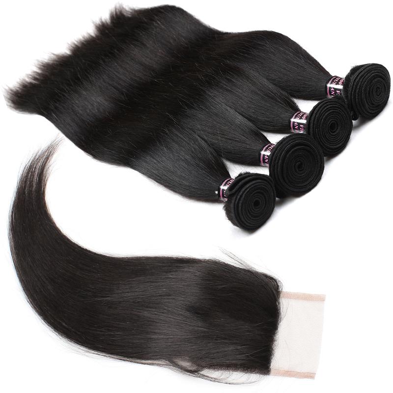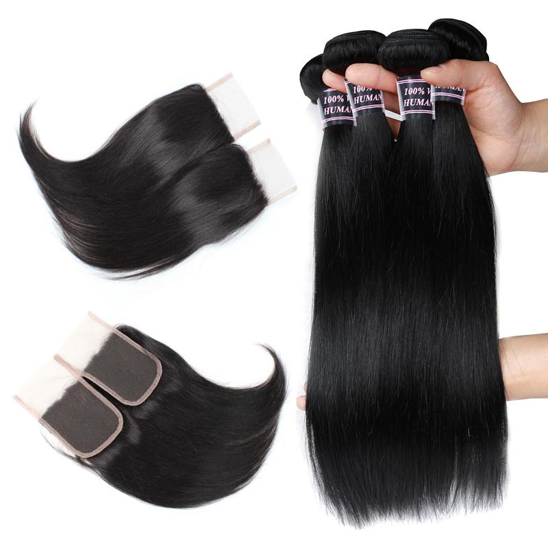 Funmi Hair 4 Bundles With Closure Brazilian Straight Human Hair 4 Bundles With Straight Lace Closure
