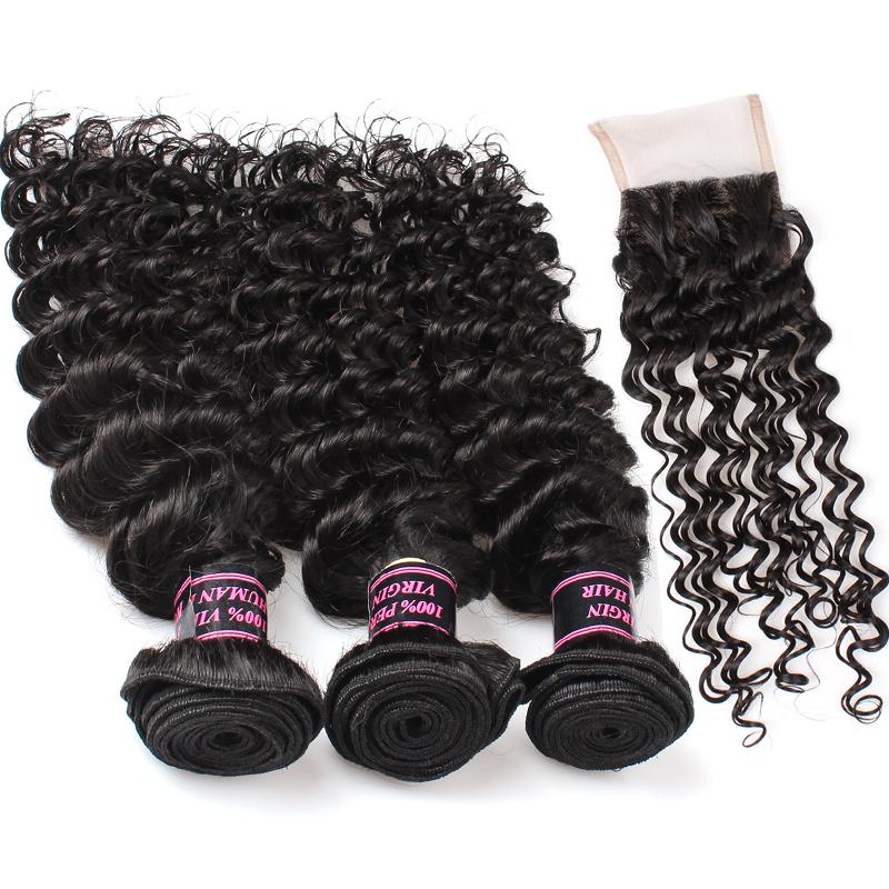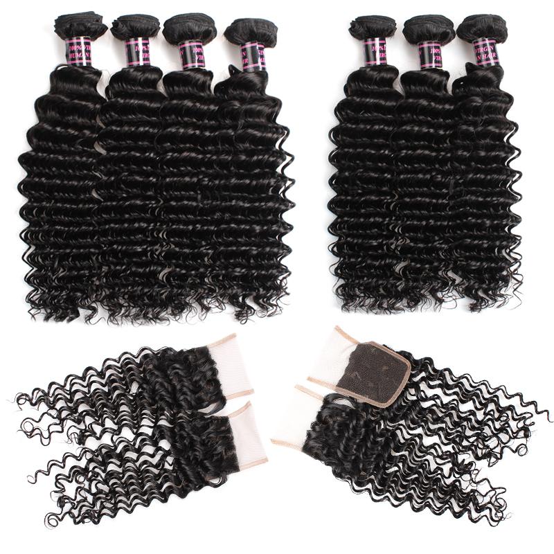 Funmi Hair 4 Bundles With Closure Malaysian Deep Wave 4 Bundles Virgin Human Hair With Lace Closure