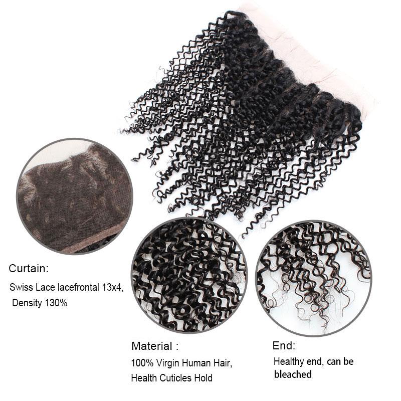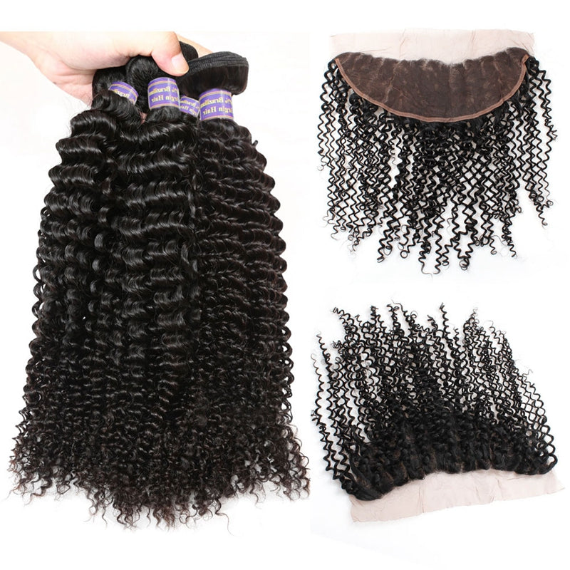 Usually 3 bundles or 4 bundles curly hair weave can make a full head when they show in the human hair extensions to the head. But on the top of the head, you are required to wear a lace frontal closure to cover. So that our curly hair 4 bundles with lace frontal closure is a perfect set of hair extensions accessories to decorate with your hair. Lace frontal closure is not only protect your own hair, but also lace closures are excellent at giving a seamless install, so that they give the appearance of a natural looking scalp. You also can blend the closure in perfectly with your natural hair as you want. You benefit from our curly bundles with frontal. Big Discount, Free Shipping.