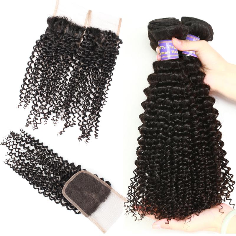 Easy Hair 10A Unprocessed Indian Kinky Curly Human Hair 3 Bundles With Lace Closure