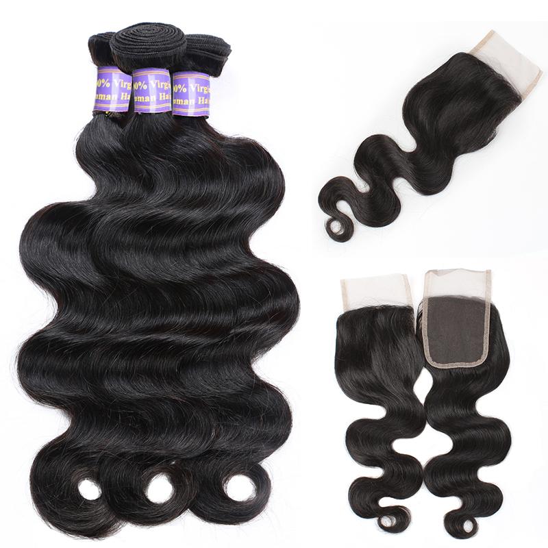 Easy Hair 10A Peruvian Virgin Hair Body Wave 4 Bundles With Closure Unprocessed Human Hair Bundles