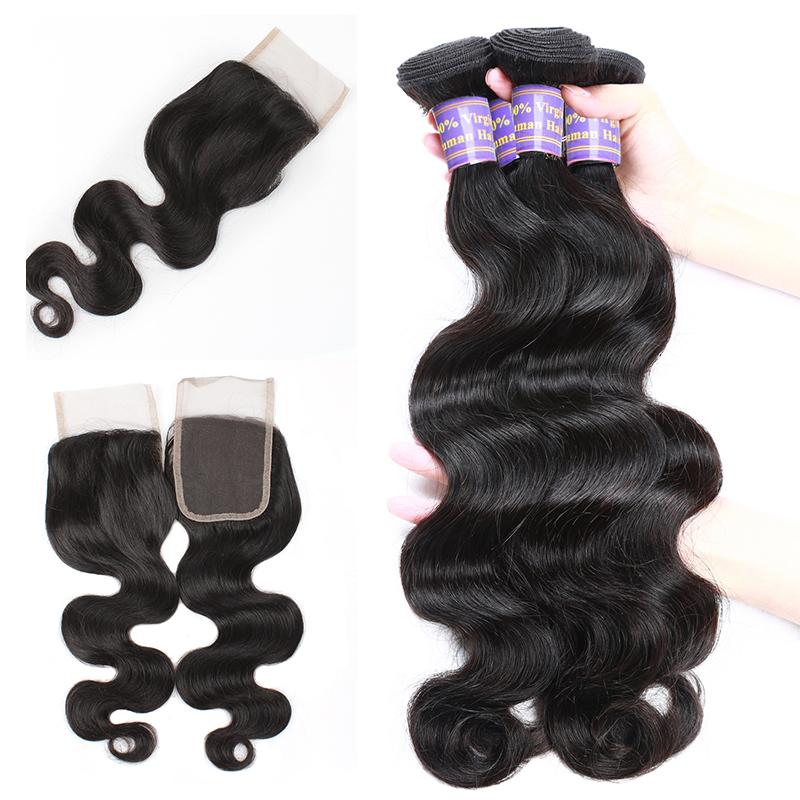 Easy Hair 10A Unprocessed Brazilian Body Wave Human Hair 3 Bundles With Lace Closure