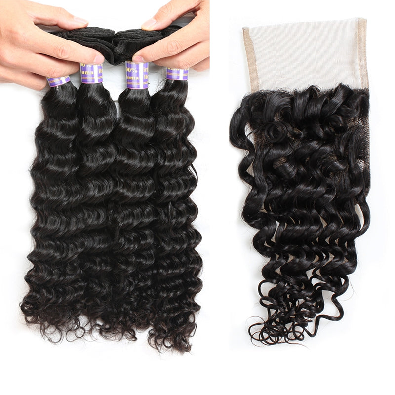 Easy Hair 10A Indian Virgin Human Hair Deep Wave 4 bundles With Closure