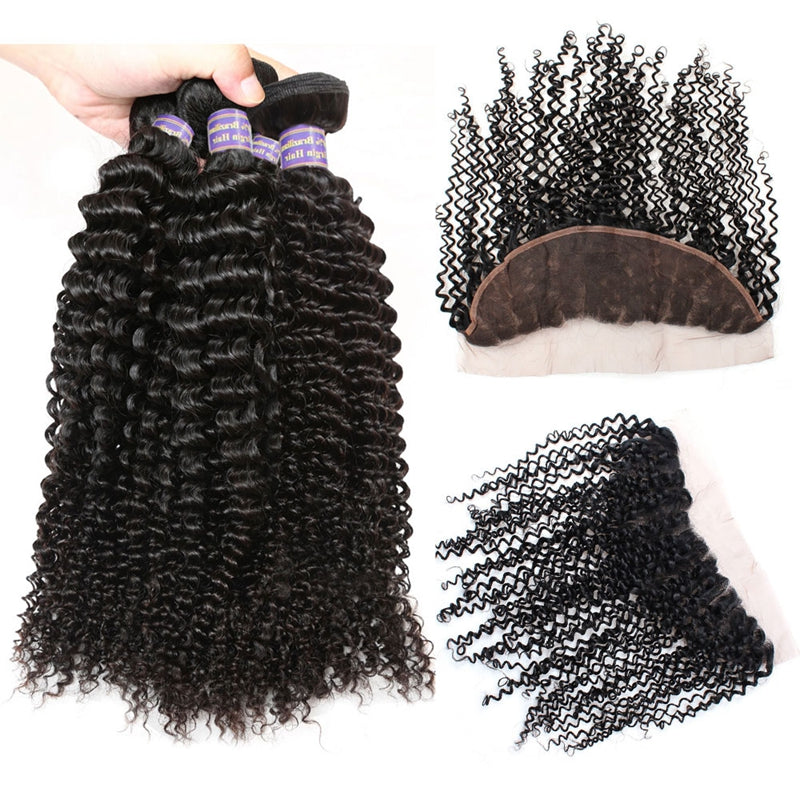 Easy Hair 10A Kinky Curly Malaysian Virgin Hair 4 Bundles With 13x4 Lace Frontal