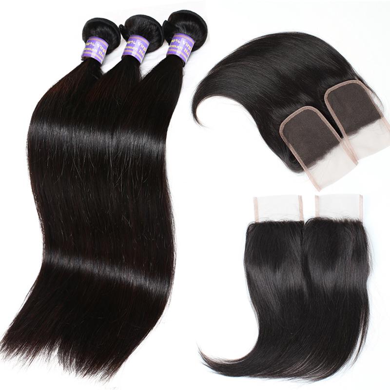 - Item Name: Peruvian silky straight hair bundles human hair extensions with closure