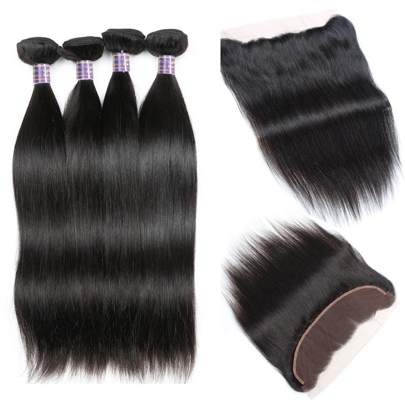 Easy Hair 10A Peruvian Straight Virgin Hair 4 Bundles with 13x4 Lace Frontal
