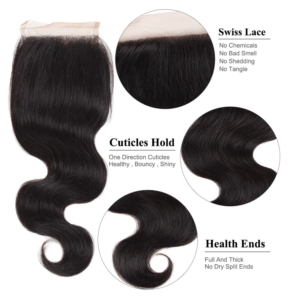 Funmi Hair Lace Closure Virgin Indian Body Wave Human Hair Lace Closure 4*4 Swiss Lace Closure